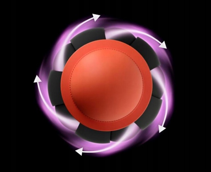 13 лопастей рабочего колеса цифрового двигателя Dyson V9 вращаются со скоростью до 110 000 об/мин, создавая давление 3,2 кПа, достаточное для создания эффекта Коанда.