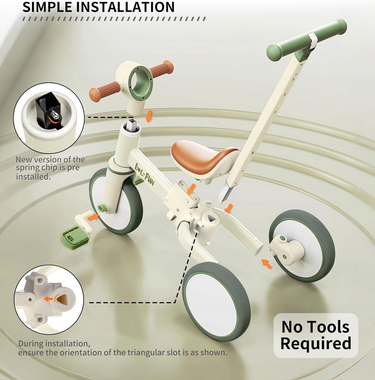 Трехзаминый велосипед был разработан для детей в возрасте от 1 до 3 лет и предлагает целых пять режимов использования. Благодаря этому он адаптируется к потребностям малыша на каждом этапе развития, поддерживая науку о балансе, моторной координации и первые попытки педалирования. Режим с ручкой для нажатия позволяет родителям поддерживать ребенка во время вождения, но велосипед не действует как коляска.