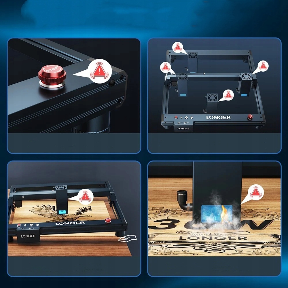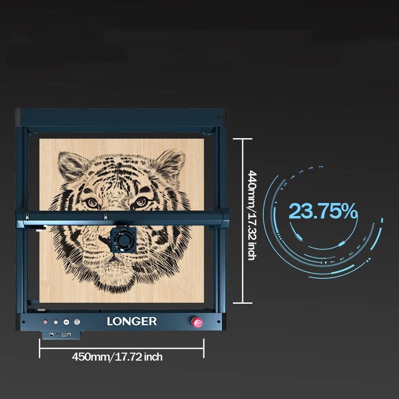 Благодаря рабочей зоне 450 x 440 мм вы можете гравировать рисунки формата до А3. Новая 32-битная материнская плата обеспечивает работу на скорости до 36 000 мм/мин. Более того, бесшумный привод TMC2009 позволяет бесшумно работать с более чем 1000 поддерживаемыми материалами. Лазер LONGER B1 имеет прочную металлическую раму, позиционер фокуса, концевые выключатели XY и восемь функций безопасности для вашего удобства. Он также совместим с популярным программным обеспечением для гравировки, таким как LaserGRBL или Lightburn, и предлагает множество вариантов переноса.