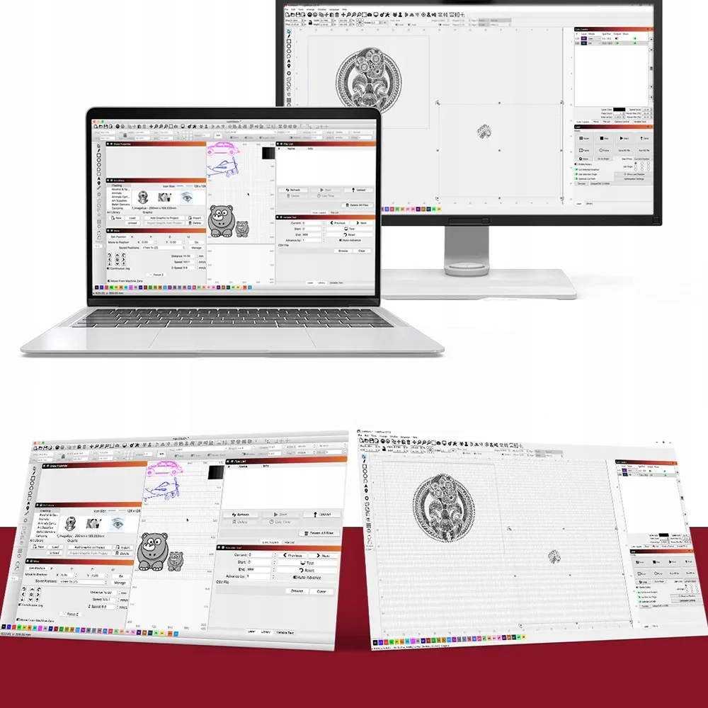 Совместимо с LaserGRBL и LightBurn и поддерживает Windows 7+, macOS и Linux. Поддерживаемые форматы файлов: JPG, PNG, BMP, G-код, GIF, SVG, NC, GC и другие.