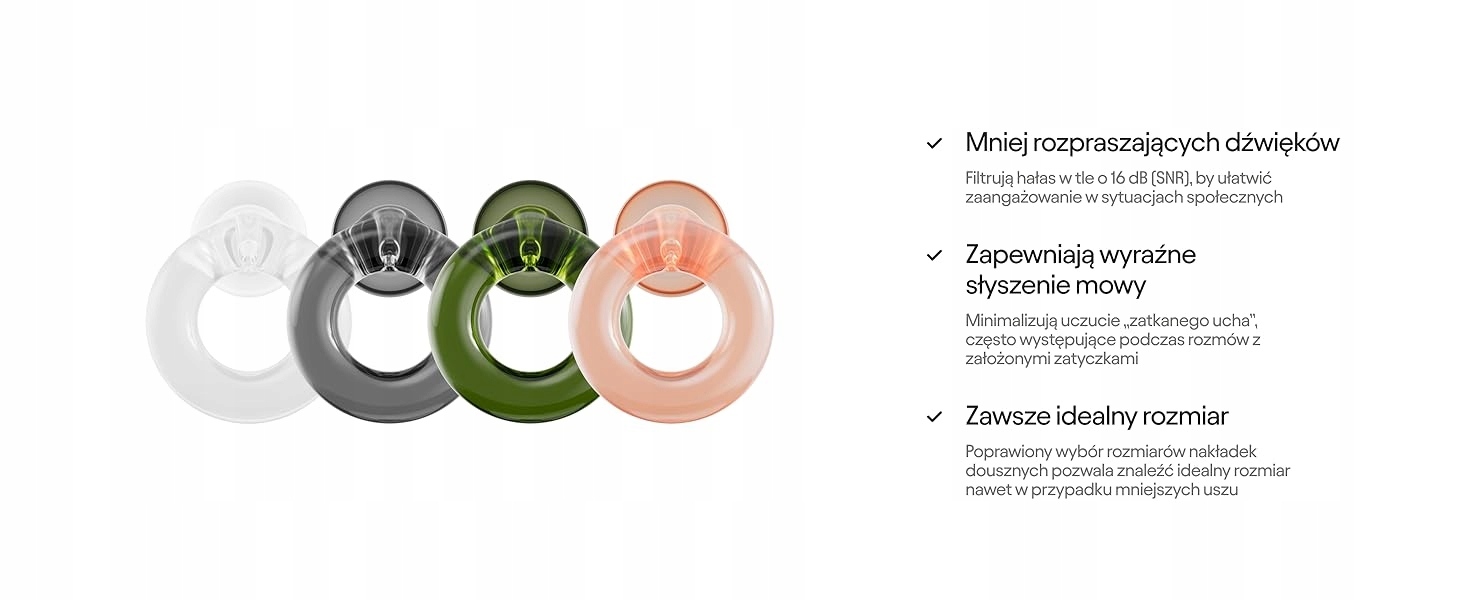 Меньше отвлекающих факторов, больше фильтров подключения фоновый шум на 16 дБ (SNR) для более настоящего социального опыта. Сохраняет четкую речь. Сводит к минимуму ощущение «заложенного уха», часто встречающееся при разговоре с затычками для ушей. Настраиваемые. 4 улучшенных размера ушных вкладышей для идеальной подгонки даже для маленьких ушей. Многоразовые и легко чистящиеся. Носимые. день за днем и ночь за ночью Удобный футляр Безопасное и надежное место для наушников, когда вы в пути Сертифицированная защита органов слуха Высококачественная защита органов слуха от вредного шума