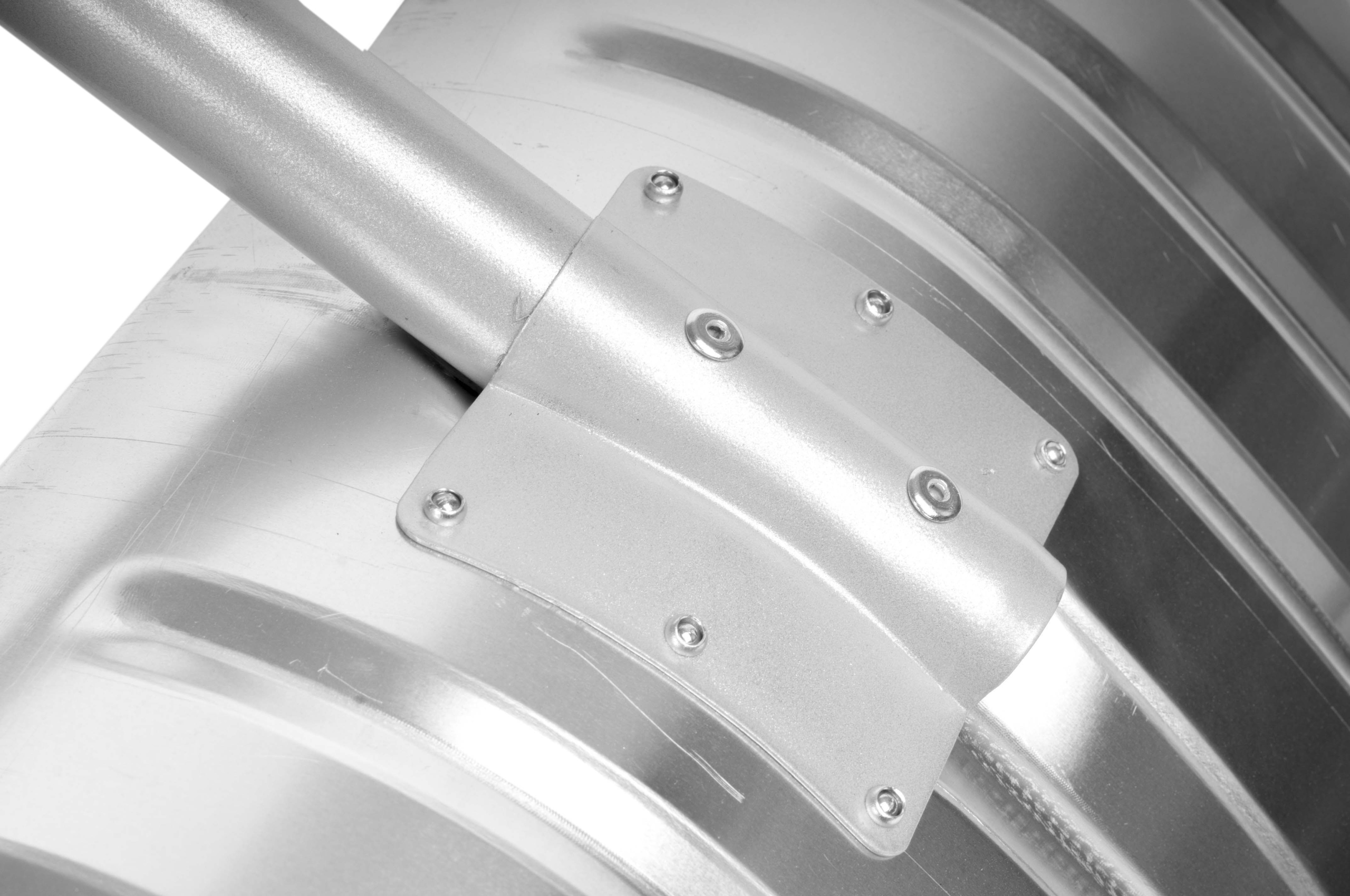 Стойка крепится к лопате с помощью стальной ручки специального профиля, которая соединяется шестью заклепками.