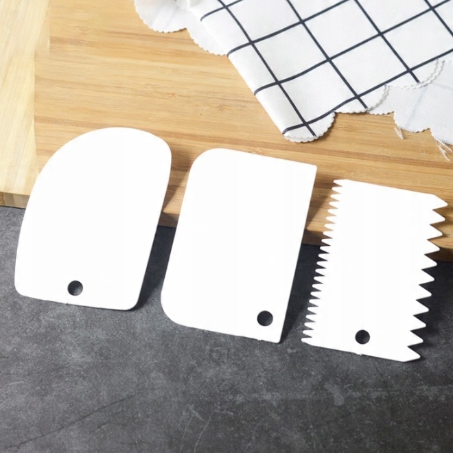 Набор из 3-х лопаток с зубцами для украшения и вырезания тортов и тортов различной формы. Он идеально подходит для украшения кондитерских изделий.