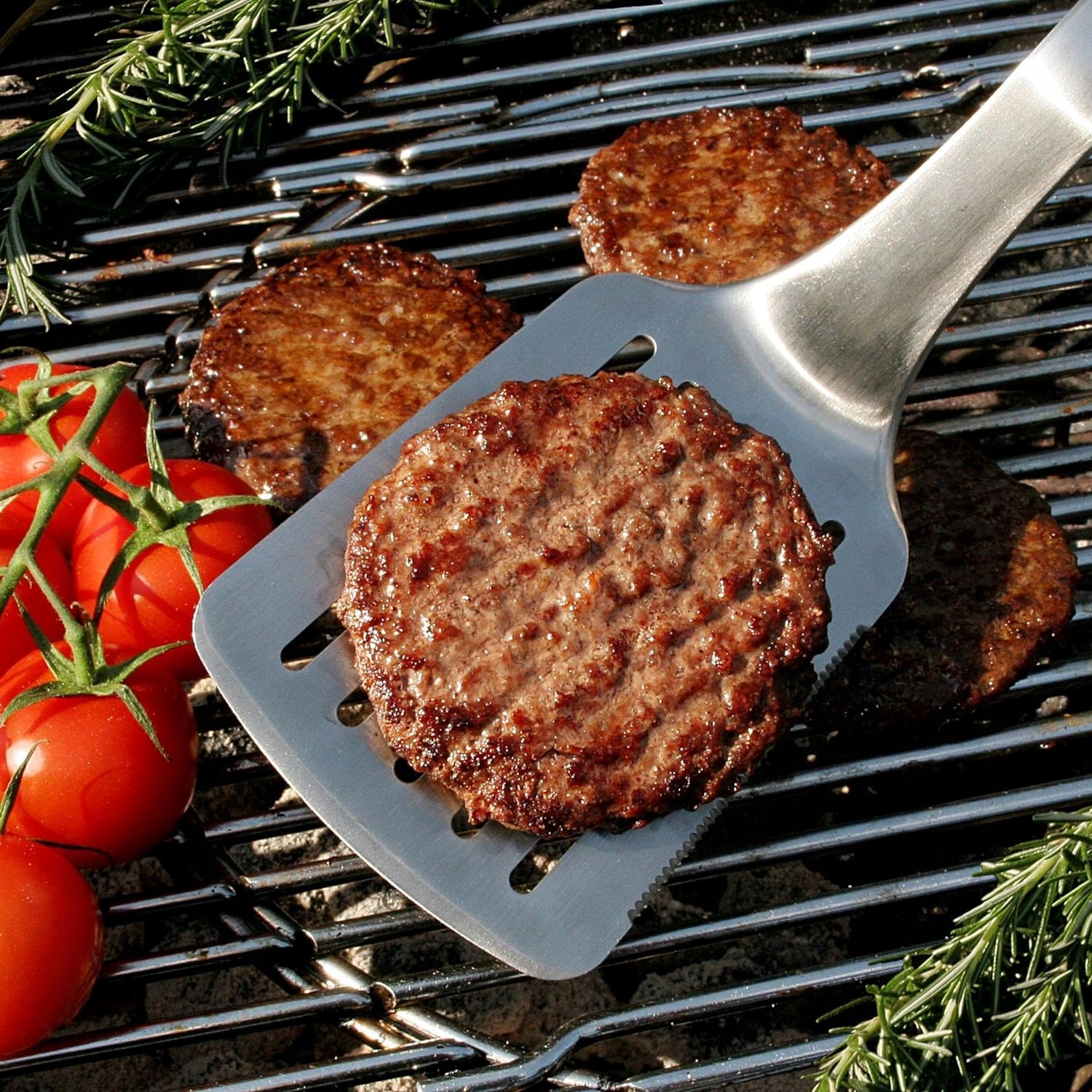 - Высококачественная лопаточка для гриля: идеальный аксессуар для гамбургеров, позволяющий переворачивать вкусные блюда, приготовленные на гриле. Как лопаточка из нержавеющей стали, она также подходит для кухни для сковород и планшетов.
