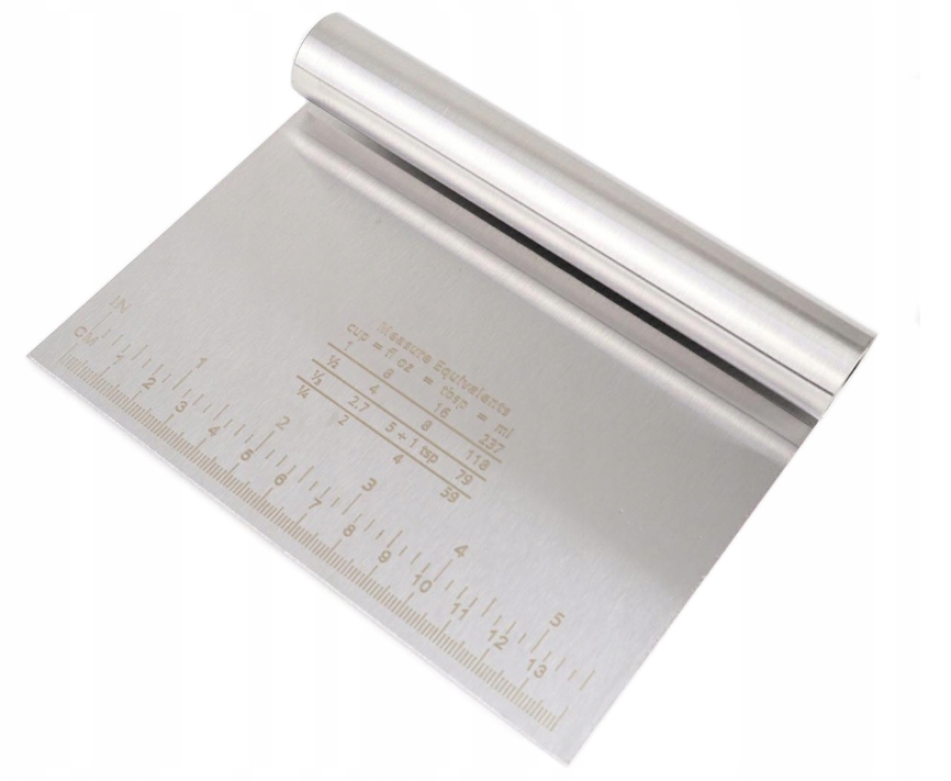 - Благодаря металлу ручкой, лопаточка устойчиво держится в руке. Меры на конце лезвия облегчат работу с продуктами.