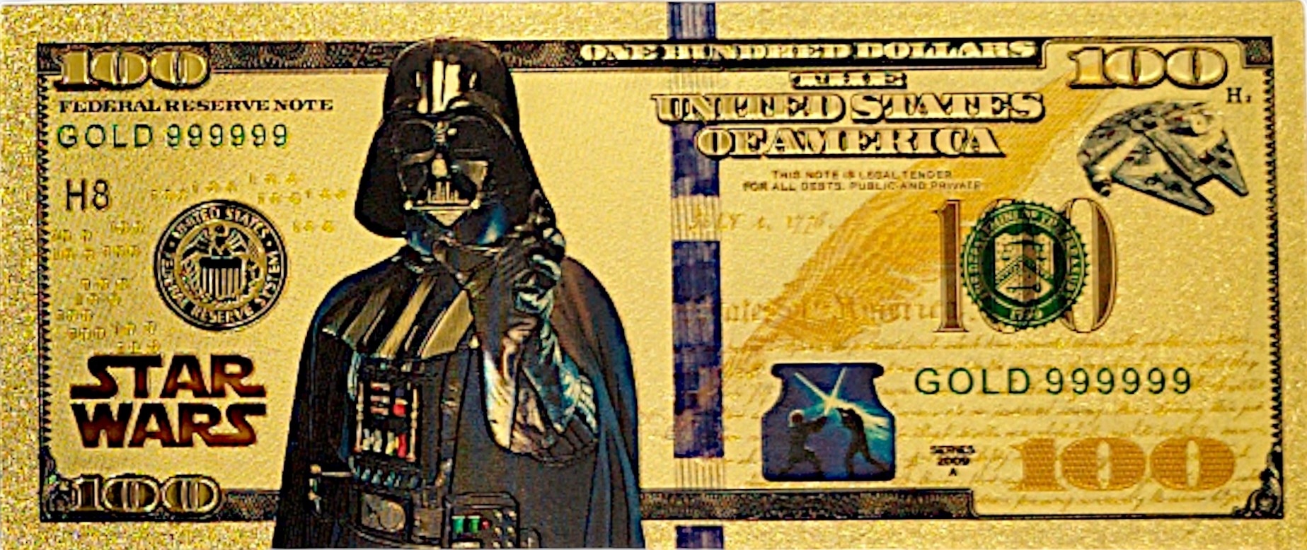 Baily Beautiful Gold -Plosted Collector's Banknote с изображением лорда Вейдера из фильма Звездные войны.