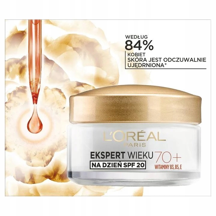L'Oréal Paris создала линию Age Expert, ориентированную на особые потребности в уходе против морщин для молодости кожи в любом возрасте. После 70 лет коже может не хватать питательных веществ, что приводит к увяданию кожи. ослабление ее естественного защитного барьера. Кожа теряет упругость и начинают проявляться изменения цвета. Питательный дневной крем против морщин 70+ Age Expert заметно уменьшает признаки старения кожи благодаря формуле, обогащенной витаминами B3, B5 и E и маслом камелии, обеспечивающими тройную силу: сохранение овала лица, уменьшение морщин и борьбу с обесцвечиванием. Сильная комбинация витаминов B3, B5 и E поддерживает естественные процессы обновления кожи, укрепляя ее защитный барьер, а масло камелии — ценное, легкое масло, которое помогает питать и увлажнять кожу. Благодаря формуле с фильтром SPF20 защищает от УФ-излучения и заметно уменьшает обесцвечивание.