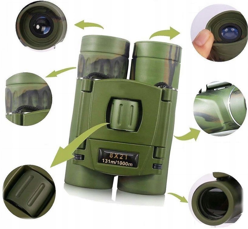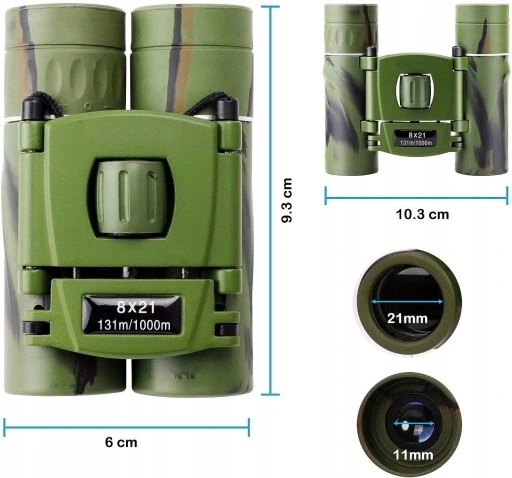 БИНОКЛЯР 8X21 ДЕНЬ-НОЧЬ КАМУФЛЯЖНАЯ КОМПАКТНАЯ СТЕКЛЯННАЯ ОПТИКА ДЛЯ ВЗРОСЛЫХ ДЕТЕЙ