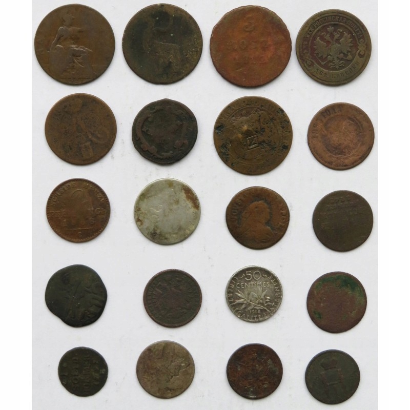 ЛОТ из 20 старинных монет 18-20 веков, разные страны.