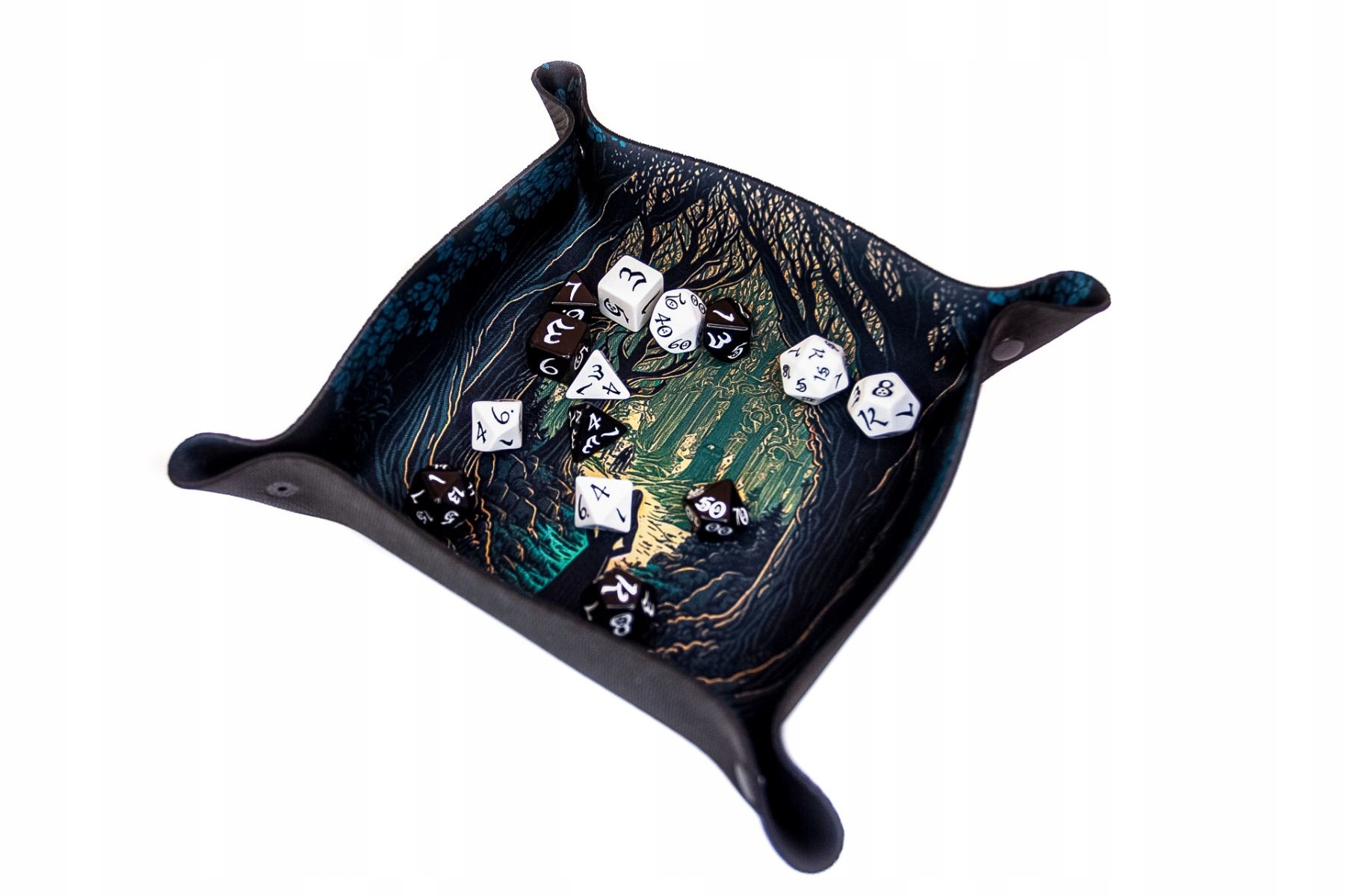 - В углах есть прочные пластиковые давления благодаря, на что мы можем превратить плоский коврик в миску для броска костей.