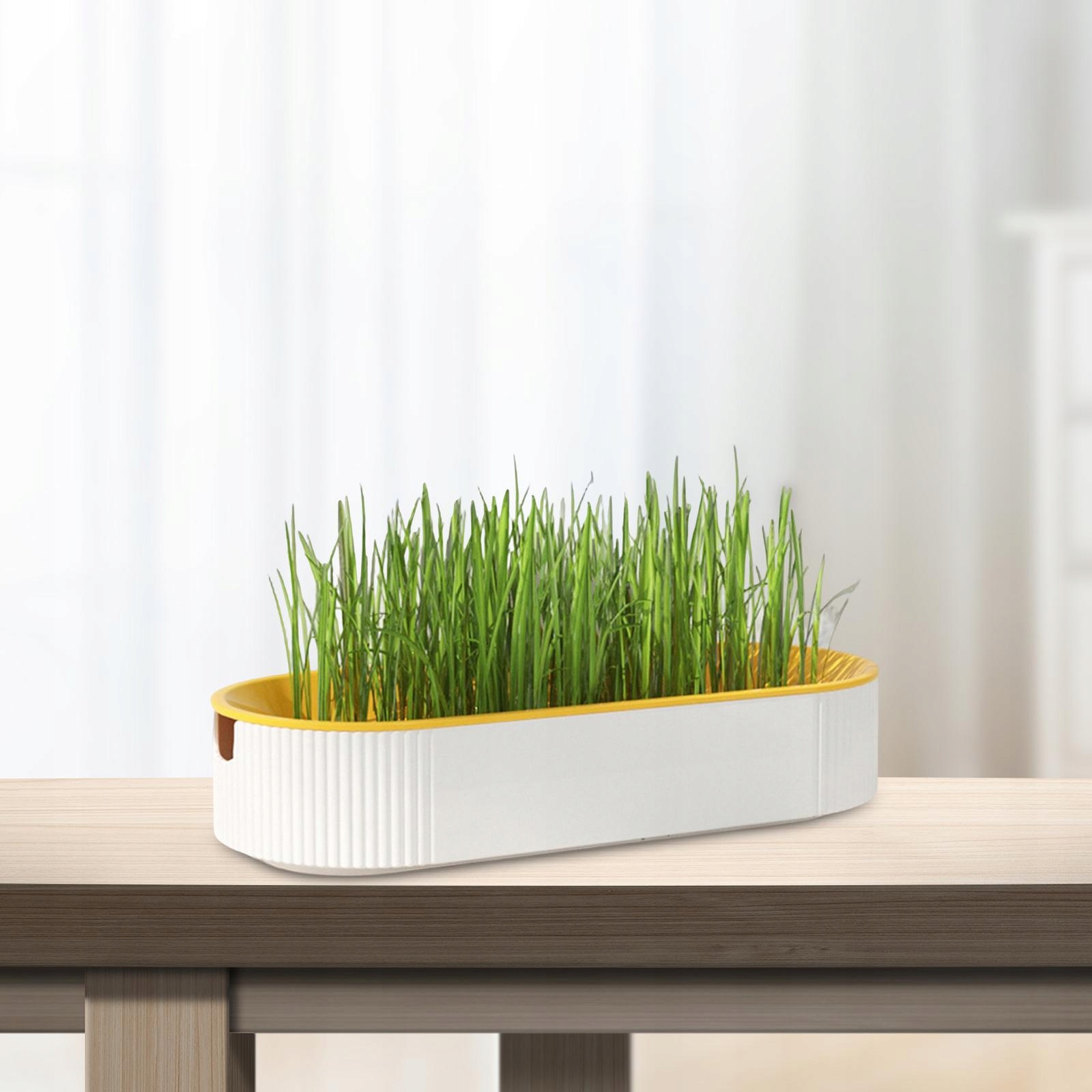 Легко в использовании: поднос из заводчиков пшеничной травы останавливает воду, обеспечивая достаточное количество влаги и питательных веществ для семян и способствуя прорастанию.