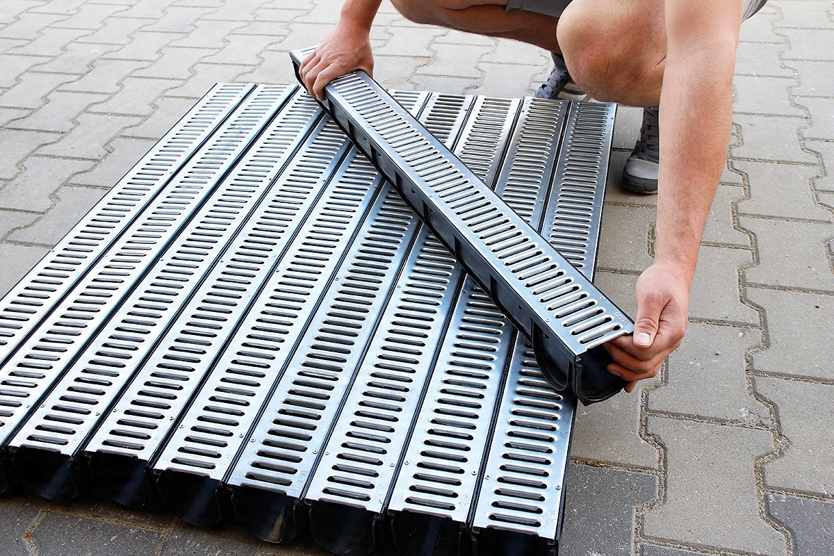Пластмассовый канал для установки линейного водоотвода имеет оцинкованную решетку, что обеспечивает значительно большую долговечность и улучшает эстетику.