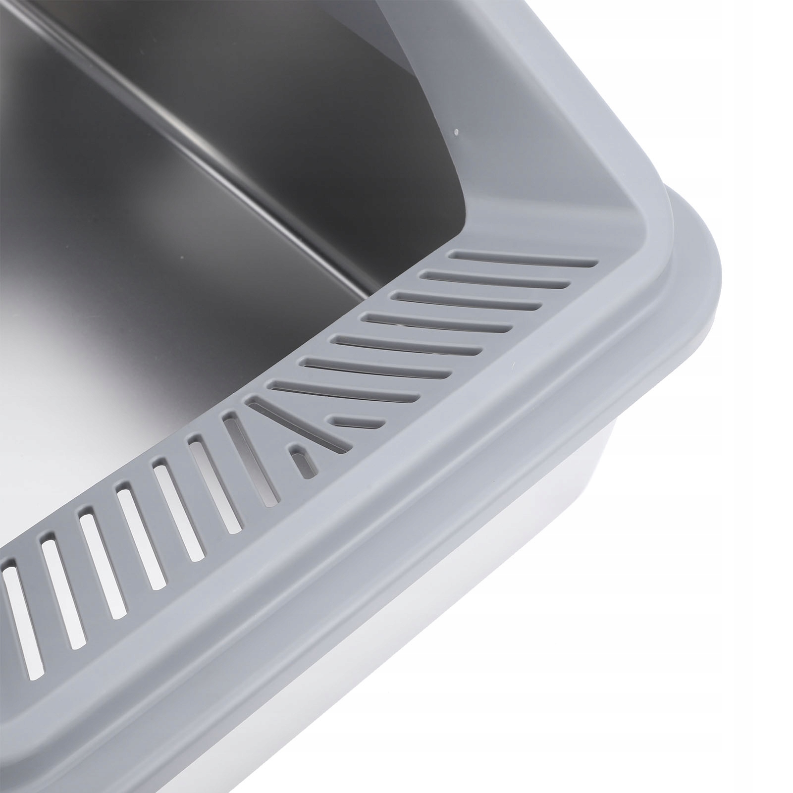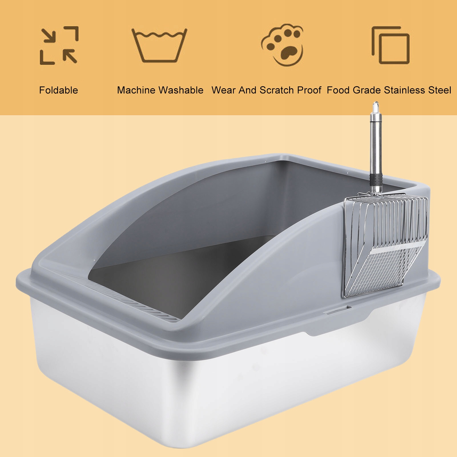 1. Управляемая конструкция из нержавеющей стали: изготовленная из нержавеющей стали, эта открытая кошачья ящик создана до конца, обеспечивая надежность для более крупных кошек. Его повышенная конструкция эффективно предотвращает утечки и бааган.