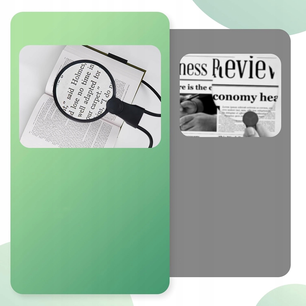 🔎🔎 Регулируемая яркость светодиодов: Это увеличение без использования рук имеет 24 встроенных светодиодов, которые можно отрегулировать в зависимости от среды. Он обеспечивает яркое, равномерное освещение, эффективно снижая усталость глаз, что обеспечивает удобное чтение в темной или плохо освещенной среде.