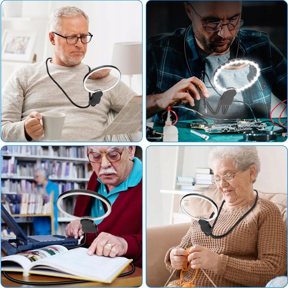 можно повесить вокруг шеи, чтобы отрегулировать направление и высоту, или положить на стол. Он идеально подходит для чтения, перекрестной эмбердерии, ремонта и других задач, и даже после длительного использования не вызывает усталость.