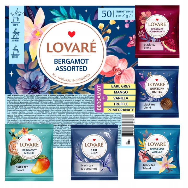 Набор чернокожих Lovare Assorted Bergamot Tea 50 мешков свободного после 2 г