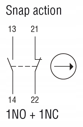 - Расположение контактов: 1НО+1НЗ мгновенного действия