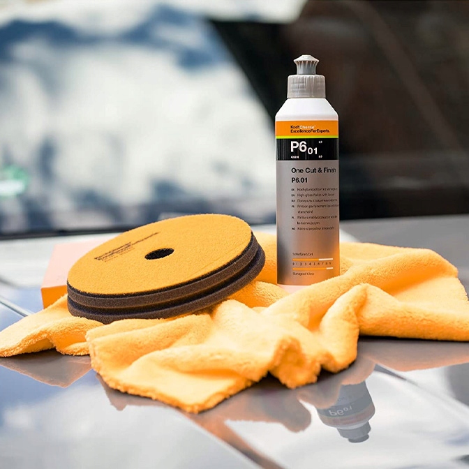 Koch Chemie P6.01 One Cut and Finish Инновационная машинная полировка для быстрого получения высокого глянца, удаления царапин и абразивных следов с бумаги зернистостью выше P2000 при нанесении воска.