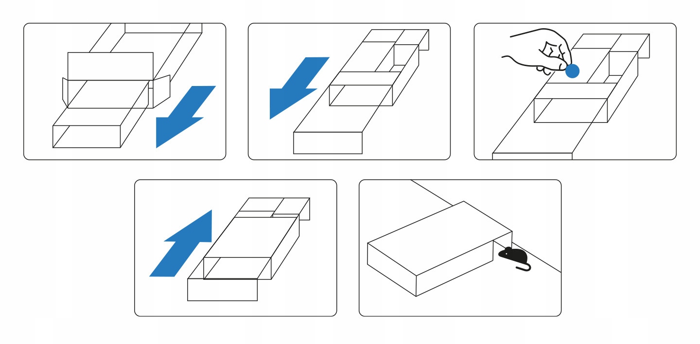 Благодаря своим компактным размерам ловец мышей можно использовать в местах, таких как кладовые, кухни, гаражи или подвалы, а также где-нибудь еще, где были замечены мыши. Всегда размещайте ловушку вдоль стен или других плоских поверхностей.
