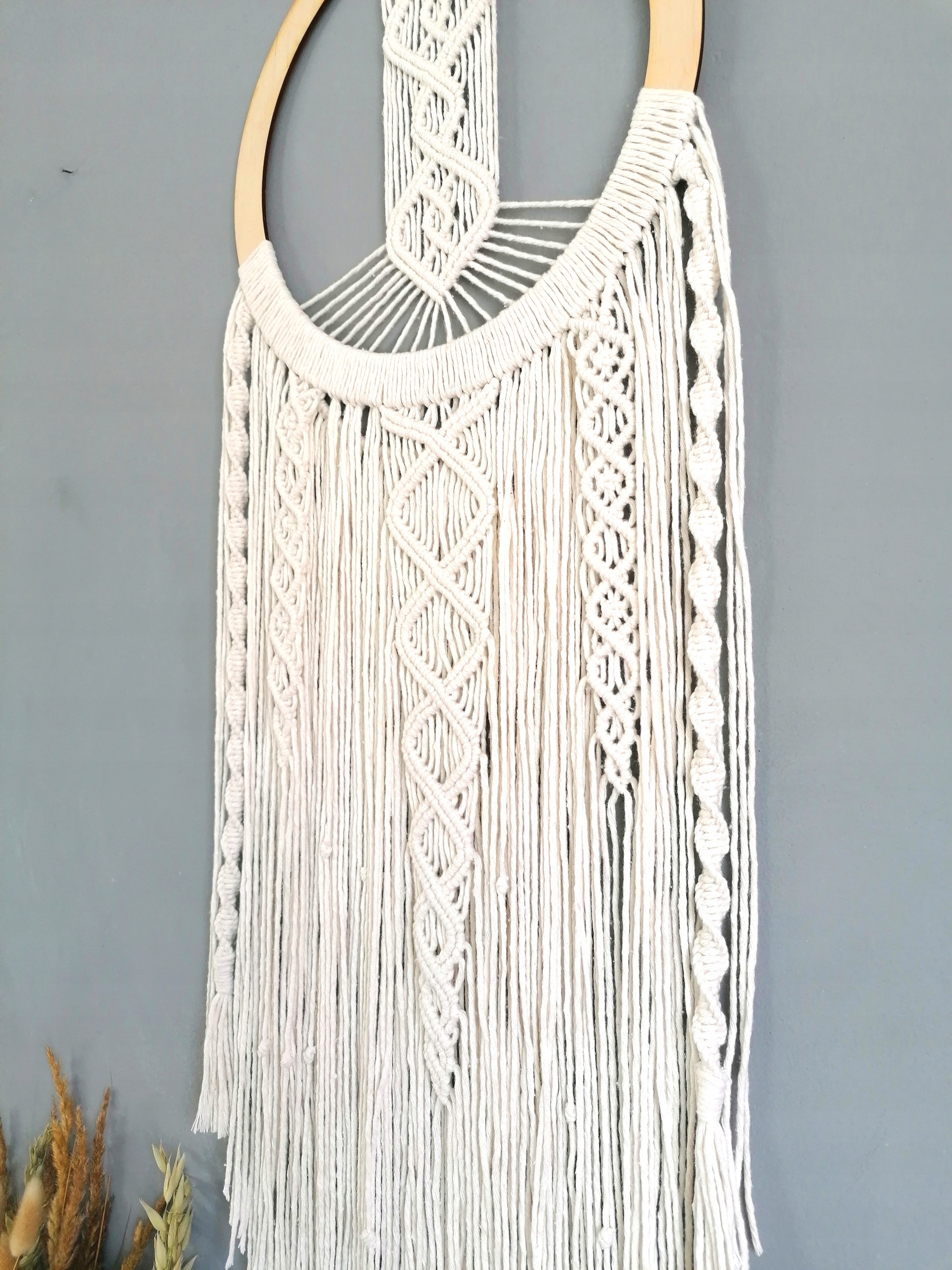 Dream Latcher - идеальное украшение для стильного интерьера и идея для уникального, оригинального свадебного, дня рождения или праздничного подарка. Ecru на деревянном ободе с внешним диаметром 30 см