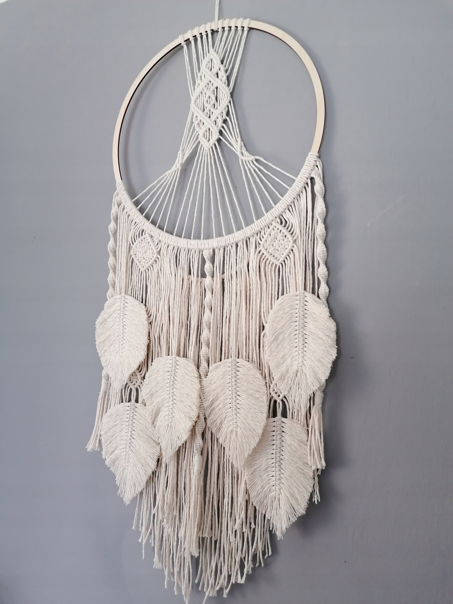 Dream Latcher - идеальное украшение для стильного интерьера и идея для уникального, оригинального свадебного, дня рождения или праздничного подарка. Натуральный хлопок/экру на деревянном ободе диаметром ок. 32 см, 3 мм толщиной и ширина стенки 10 мм.