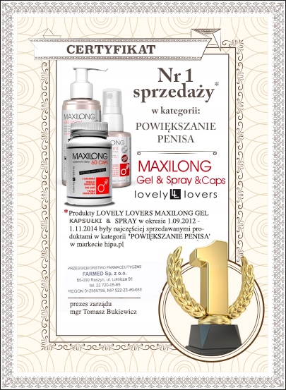 LOVELY LOVERS MAXILONG GEL 150ml & SPRAY 50ml являются наиболее часто выбираемыми препаратами в своей категории. Это было бы невозможно без сотен довольных клиентов. Именно поэтому серия LL MAXILONG отмечена сертификатом «Продажи №1» в категории: УВЕЛИЧЕНИЕ ПЕНИСА. Это имя они заслужили благодаря самым высоким продажам и благоприятным отзывам покупателей. Спасибо!