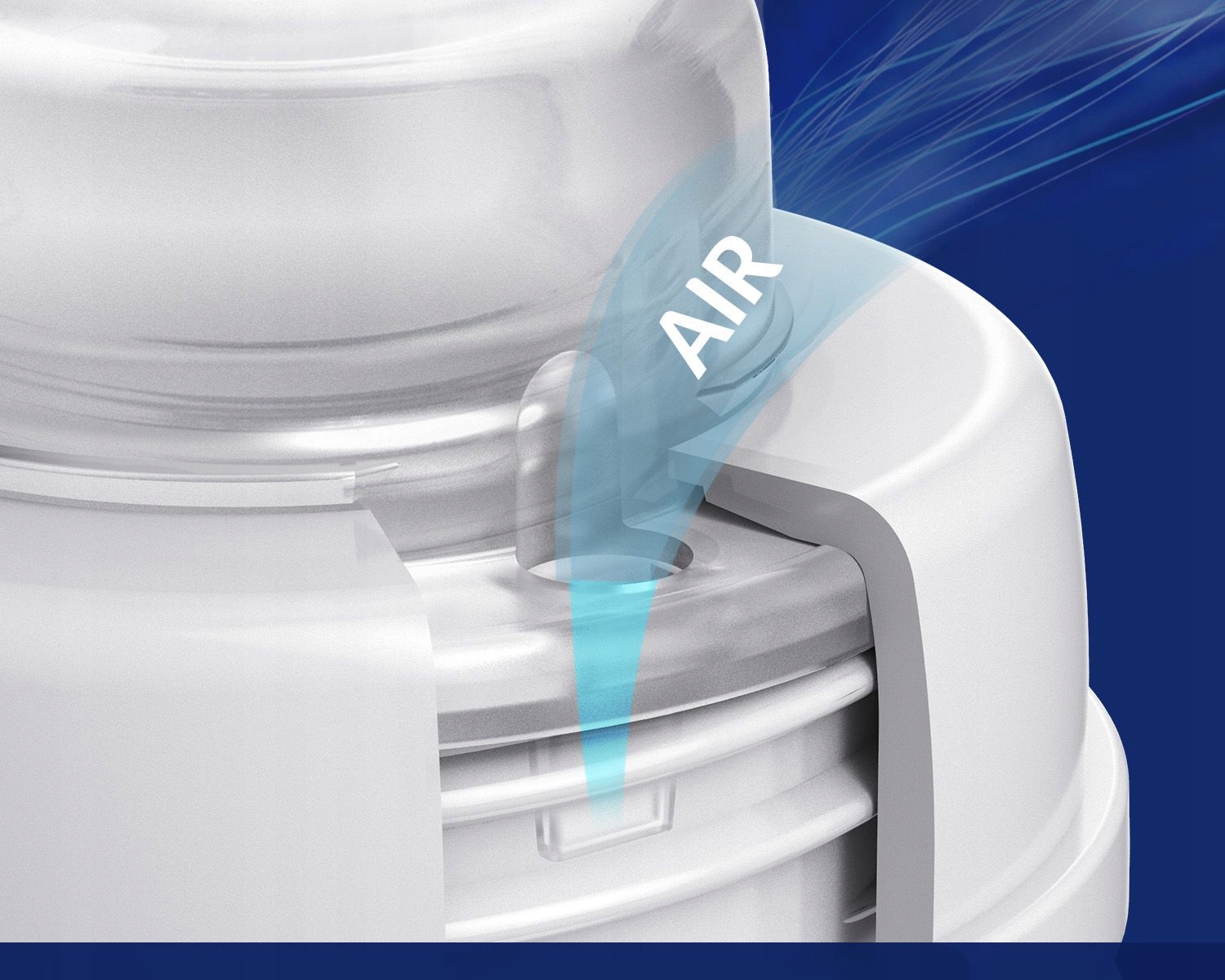 - снижает риск колики. Вентиляционный клапан предотвращает всасывание и соску, снижая риск колики.