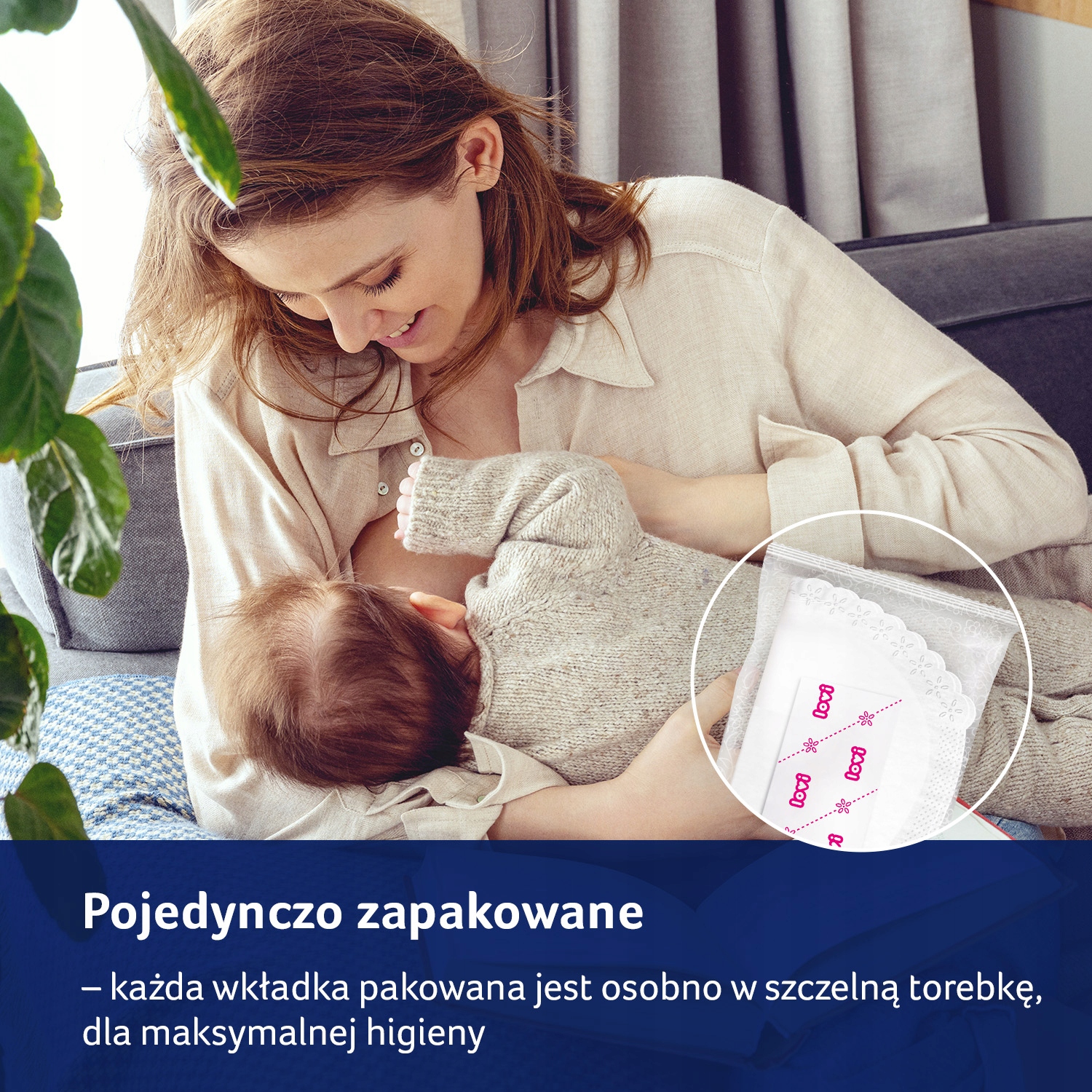 Прокладки для груди LOVI DISCREET ELEGANCE удобны и незаметны под одеждой, поэтому обеспечивают максимальный комфорт кормящей маме. Они содержат специальную гелеобразующую вставку, которая впитывает влагу и удерживает ее от попадания на кожу, поэтому гарантируют ощущение сухости днем и ночью. Вставки дышащие, поэтому чувствительная кожа груди не подвергается натиранию. Прокладки для груди Discreet Elegance, созданные брендом LOVI, имеют соответствующий профиль и идеально адаптируются к форме груди. Благодаря двойной клейкой ленте вставка не перемещается внутри бюстгальтера. Белые вставки Lovi лучше всего смотрятся в сочетании с бельем этого цвета. Благодаря тому, что они отделаны нежным кружевом, они выглядят как часть элегантного бюстгальтера.