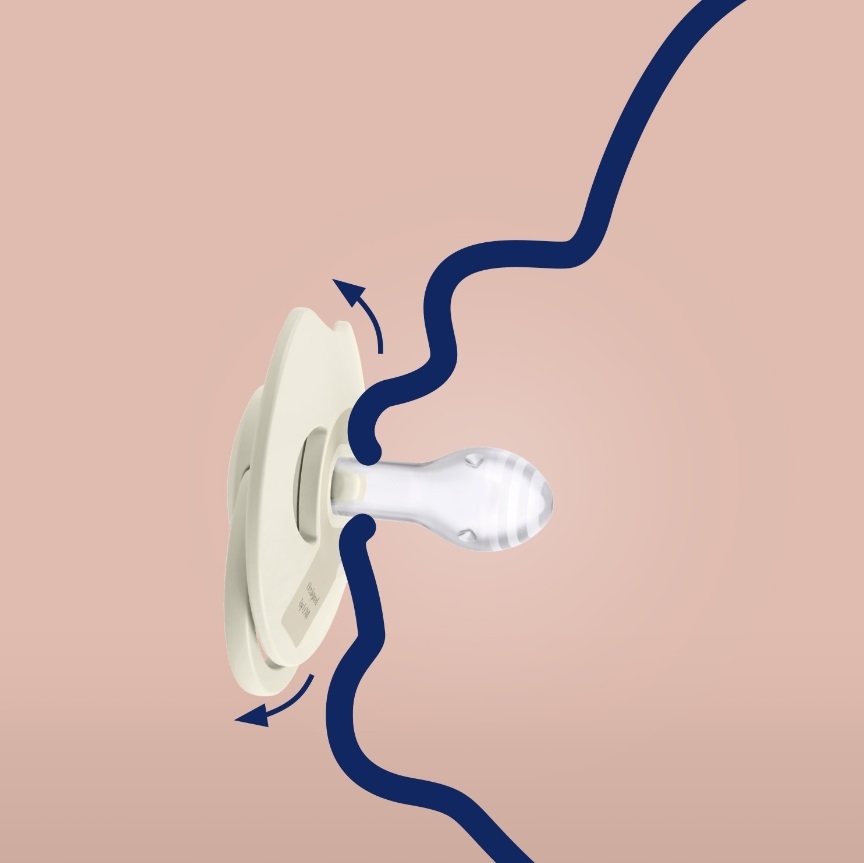 Он сделан из гетерогенного слоя силикона, благодаря которому он растягивается и сжимается в соответствии с ритмом сосания ребенка. Симметричная форма ластика отражает форму соска