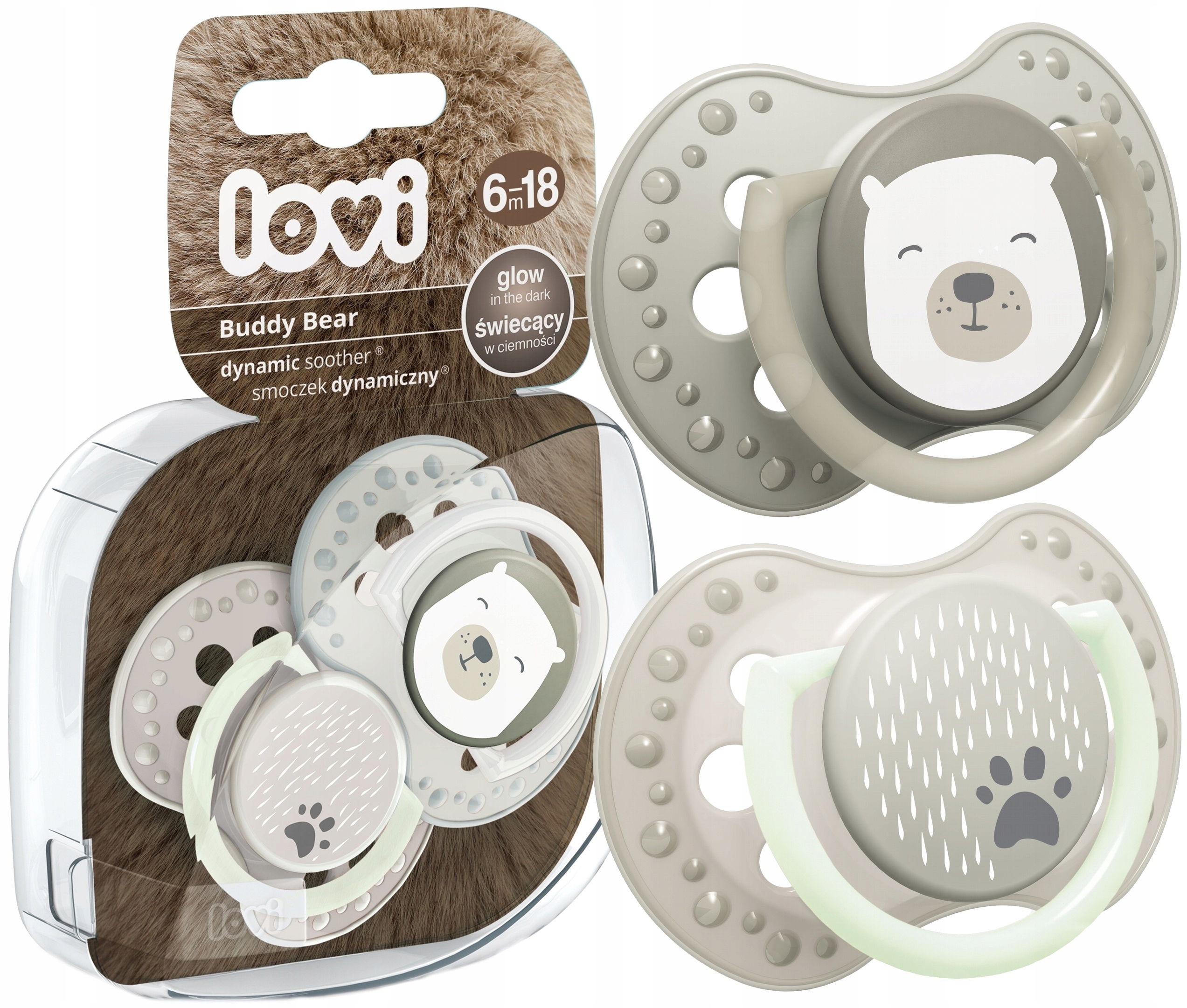 Динамические пустышки LOVI были разработаны в результате исследований с участием врачей и неврологов. Они имеют симметричную форму, вдохновленную формой соска. Специальное решение, предполагающее использование неоднородного слоя силикона, позволяет сосать в индивидуальном ритме.