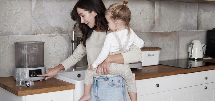 Нам не придется следить за устройством :) После завершения работы программы он автоматически выключается, и предметы внутри будут оставаться безупречно чистыми до тех пор, пока стерилизатор не будет открыт. Чтобы мы могли включить его, отправляясь на прогулку, и вернуться готовыми, не беспокоясь о бутылках внутри.
