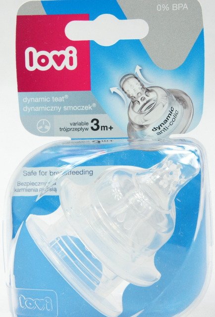 Динамическая соска LOVI для кормления сцеженным грудным молокомбыла создана в результате исследований с участием врачей и неврологов. Он изготовлен из неоднородных слоев силикона. Мягкий удлиняющийся кончик мобилизует мышцы рта для активной и напряженной работы во время кормления. Твердое, широкое, профилированное основание обеспечивает устойчивую поддержку губ. Соска имеет антиколиковую систему. Кормление материнским молоком динамической соской LOVI безопасно для грудного вскармливания (лучшая форма детского питания) и не нарушает сосательный рефлекс - подтверждено опросом на основе обследования специалистов под медицинским наблюдением, проведенного в 2007 году в амбулаторных условиях на группа из 607 младенцев с участием врачей, акушерок и родителей.