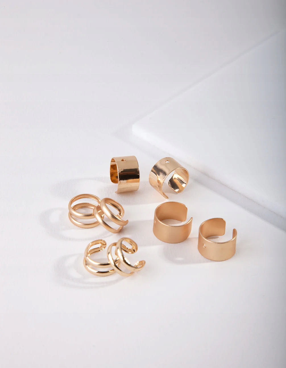 Идеальный выбор для создания уникальной стилизации на ушах! Набор содержит 8 ушных прокладков в золотом оттенке, каждая с различной текстурой. Носите их самостоятельно или в сочетании с другими стилями, такими как колеса, хаги или палки, чтобы создать свой собственный, уникальный вид. Лучшее в Earmocks - это то, что они не требуют пирсинга ушей! Вы можете положить их в любом месте на ухо, создавая стилизацию, соответствующую вам.