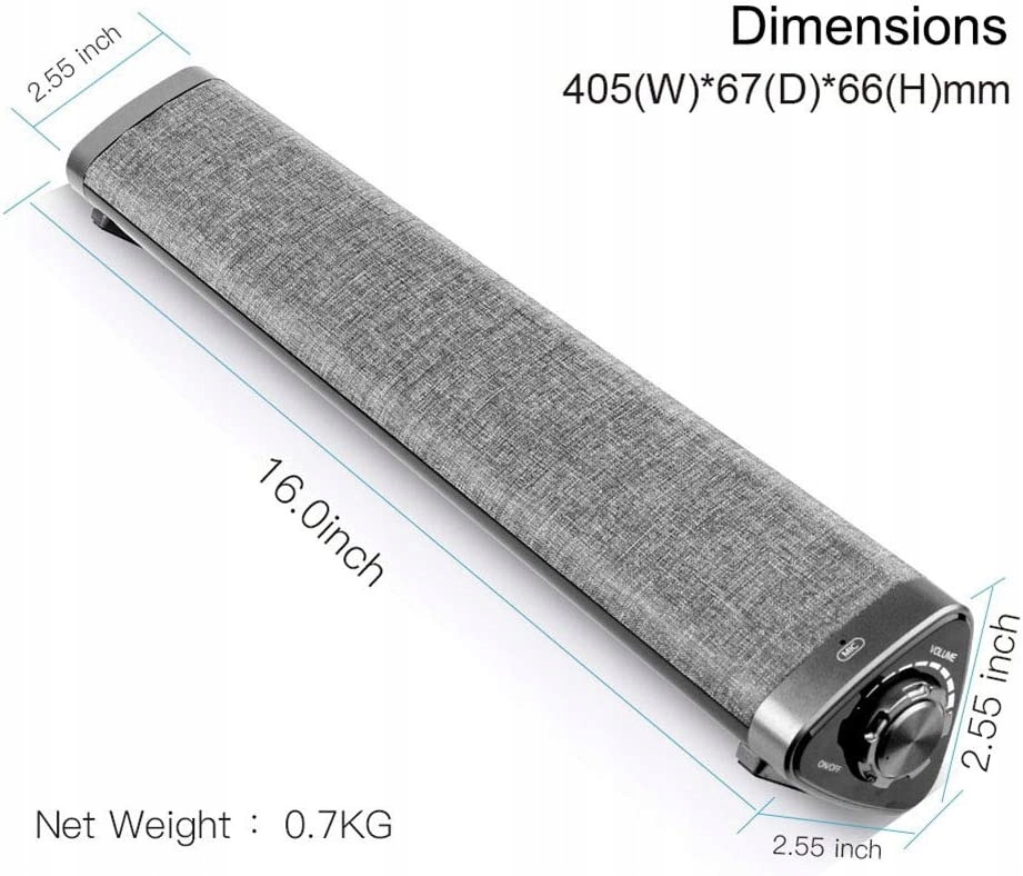 Форматы воспроизведения: MP3, WMA, WAV, FLC, APE Материал корпуса: пластик + ткань Регулировка динамика: Ручка излучения Функция: Нет Размер: 405*67*66 мм Вес изделия: 0,7 кг