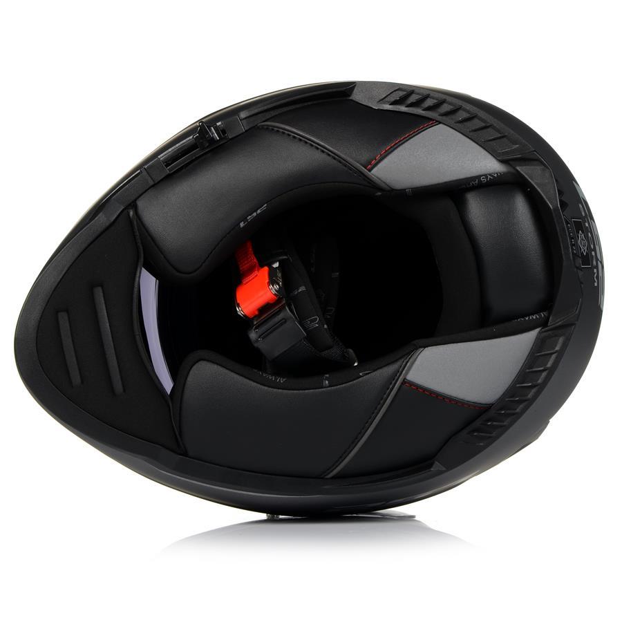 Мотошлем LS2 FF800 – это великолепный шлем, закрывающий все лицо. Корпус шлема изготовлен из KPA (кинетического полимерного сплава), смеси поликарбоната и термопластика. Его вес всего 1350 г. - без сомнения, это огромное преимущество этого шлема, тем более, что шлем имеет встроенный солнцезащитный козырек, а такие шлемы обычно гораздо тяжелее.