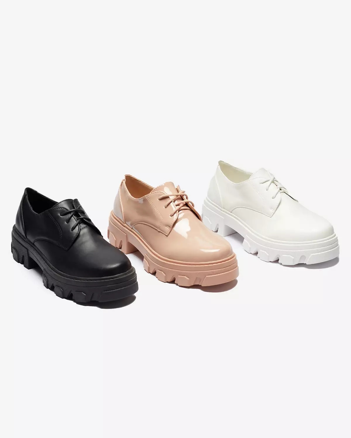 Женские туфли на шнуровке на толстой подошве. Верх и стелька выполнены из экологической кожи. Идеально подходит для повседневного использования!