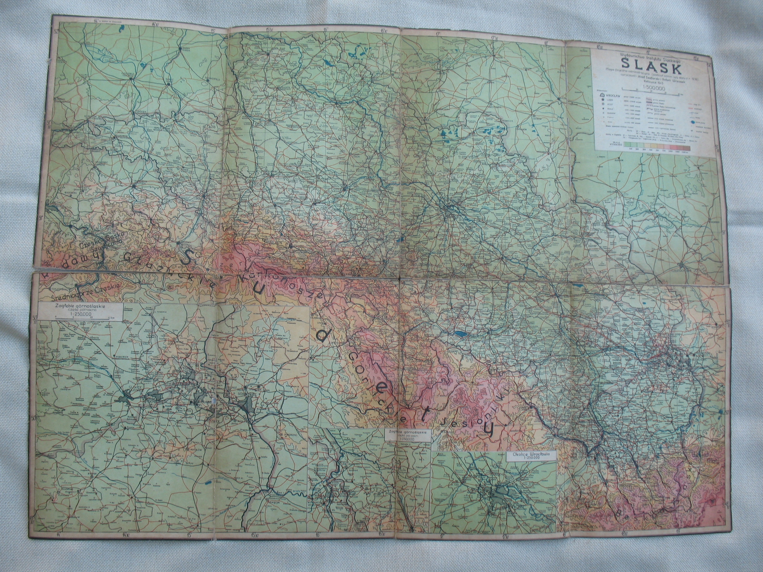 ŚLĄSK stara MAPA NA PŁÓTNIE 1945 WEDŁUG STANU Z ROKU 1939