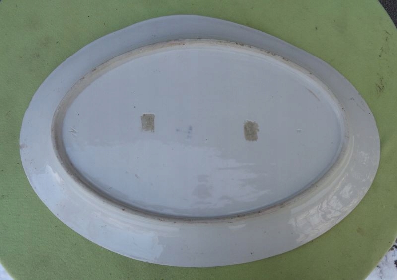 Красивое, изящное, большое блюдо, изготовленное на одной из силезских фабрик в 1860-1880 годах. У экспоната очень широкий воротник. Он был изготовлен из высококачественного фарфора цвета слоновой кости. Блюдо подписано кобальтовой подглазурной краской. Маркировка видна на фотографиях. Дополнительно он подписан буквой N, которая вдавлена в фарфор. Экспонат имеет асимметричную форму, как показано на фотографиях. Снизу есть небольшой скол, видно на фото. Всем рекомендую.