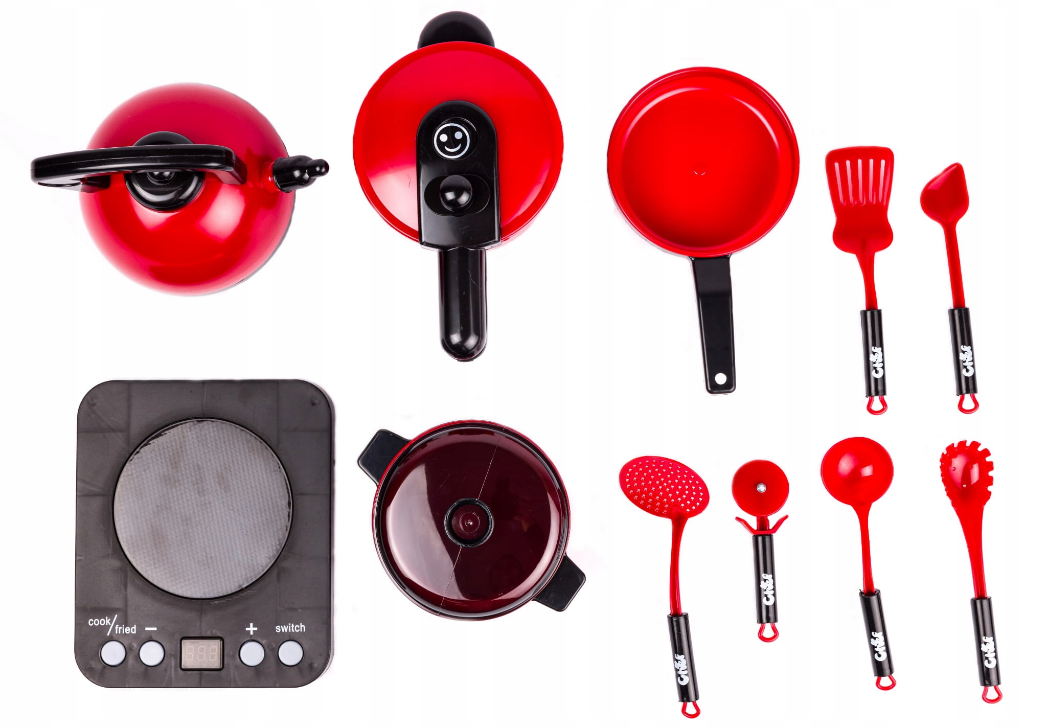 Набор включает в себя 13 чрезвычайно полезных для кулинарных элементов, которые не могут отсутствовать ни на одной кухне. Благодаря им, ваш ребенок готовит отличный ужин, состоящий из нескольких вкусных блюд.