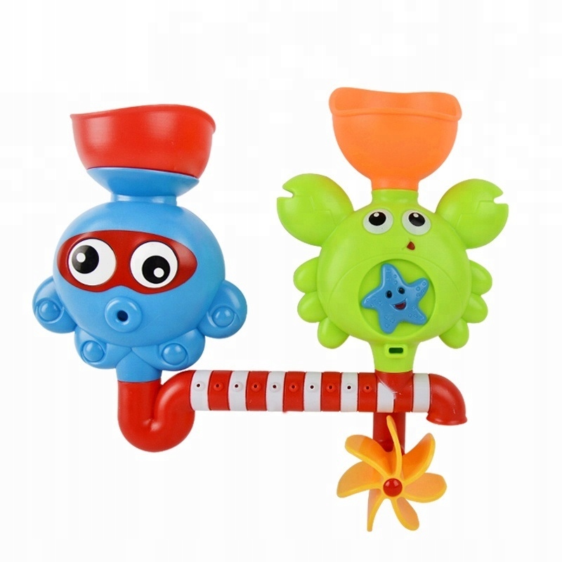Веселая игрушка предназначена для игры во время купания. Благодаря двум прочным присоскам игрушку можно прикрепить к ванне, гладкой плитке или стеклу душевой кабины. Чтобы получить удовольствие во время принятия ванны, налейте в игрушку воду сверху. Налив в осьминога воду, он вылетает изо рта, вращая глазами. После заливки воды в краба сверху вода вытекает через отверстия в бело-красной трубке, образуя фонтан. За это время звезда будет вращаться.