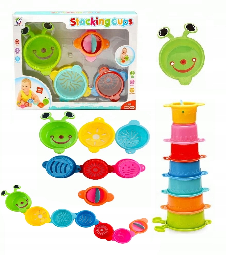 Любая игра во время ванны – огромная радость для ребенка, а если он сможет взять с собой в ванну вдохновляющие игрушки, то ванна может быть бесконечной! Переливные стаканы Caterpillar имеют в нижней части различные отверстия. Благодаря этому создается разный поток воды, что заинтересует ребенка в дальнейшей игре.