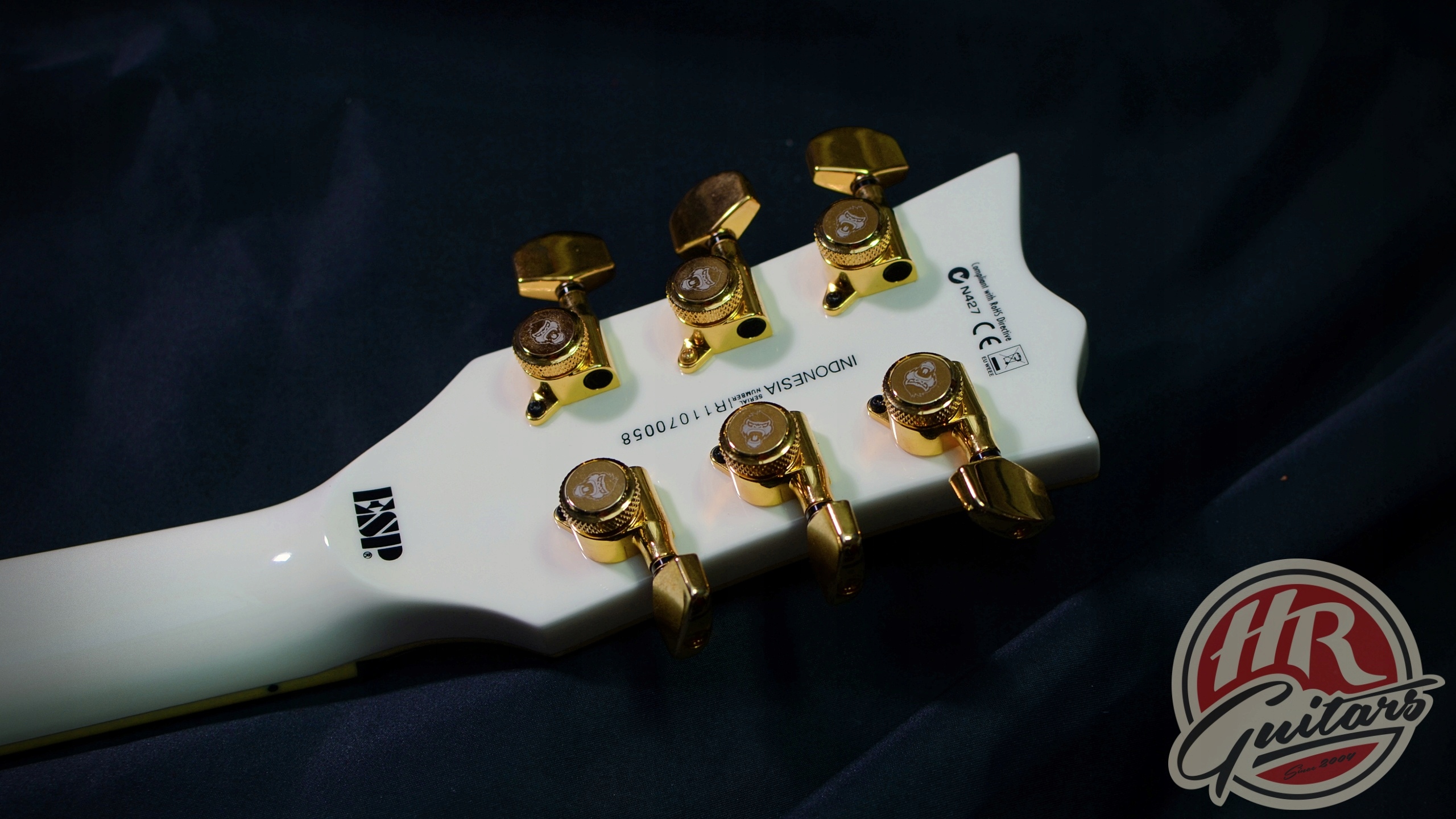 Ltd EC-401, Индонезийское производство, 2011, блестящая отделка, олимпийская белая. Гитара в очень хорошем состоянии. Тело представляет собой красное дерево с рисунком, кленовым наложением. Гриф - это красное дерево с грифом палисандровы. Мензура 24,75 дюйма. Пикапы являются активными EMG 81/60, первоначально установленным на этой гитаре. Ключи изменяются на заблокированные, все оборудование золотое. Пороги хороши. Гитара звучит и выглядит великолепно. Я рекомендую и приглашаю вас на тесты