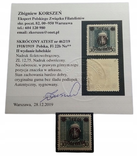 LUBELSKIE Fi 22b без реверсного друку ** СЕРТИФІКАТ K358