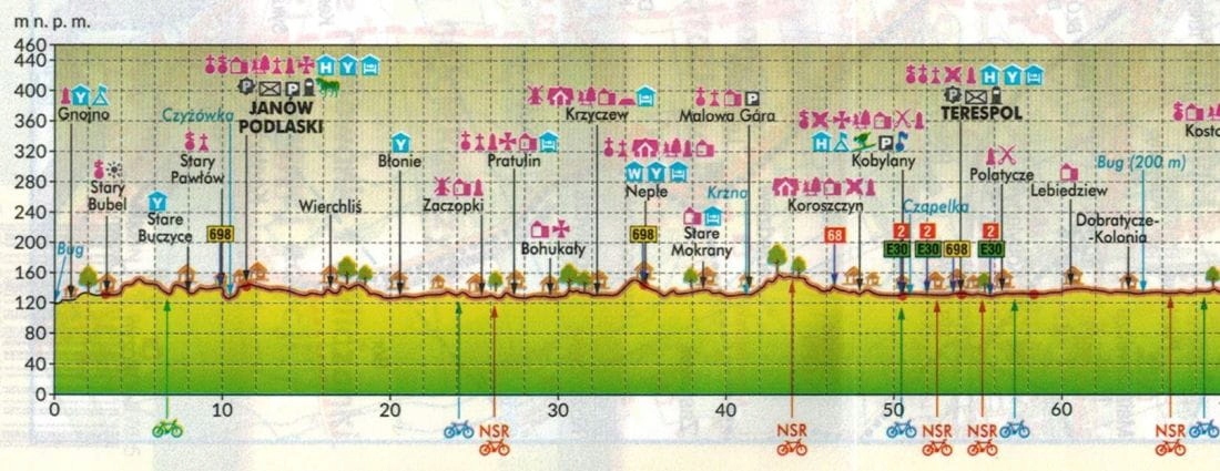 - расстояния в километрах по Green Velo Trail,