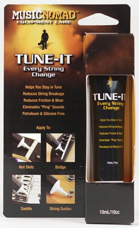 Хватит настраивать гитару после каждой песни! TUNE-IT от Muisc Nomad — ваш личный технический специалист. Благодаря этому ваша гитара дольше сохранит строй, а струны будут не так часто рваться. Наш препарат не похож ни на один другой и содержит противоабразивные соединения. Не имеет запаха, не оставляет пятен и не содержит силикона. Нанесите его на отверстия в грифе седла, мостах, седлах и слайдах. Самое главное, что на звук это никак не влияет! Идеально подходит для движущихся частей, таких как тремоло-бриджи.