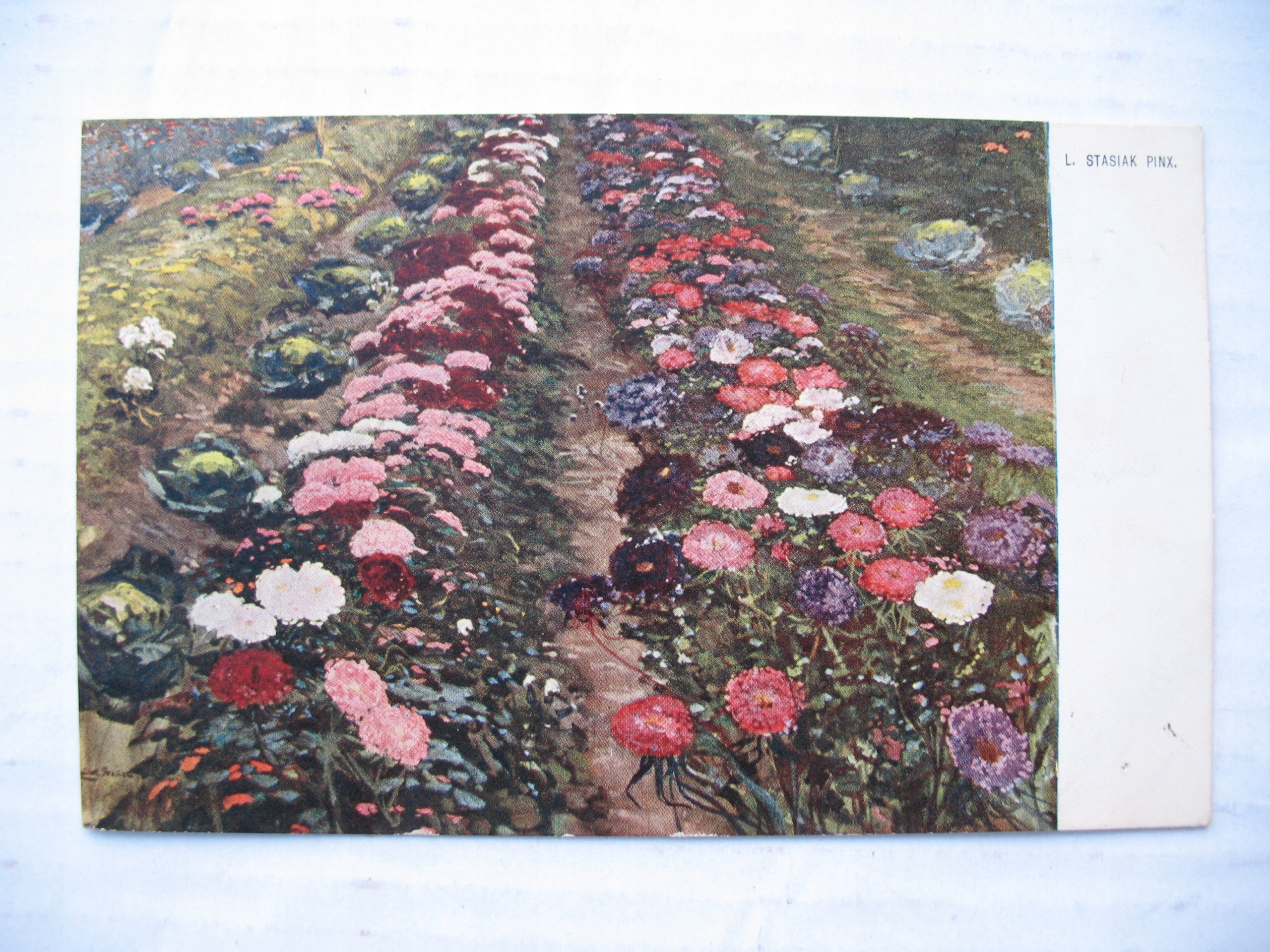 LUDWIK STASIAK KWIATOWE GRZĄDKI przedwojenna POCZTÓWKA ŻYWIEC