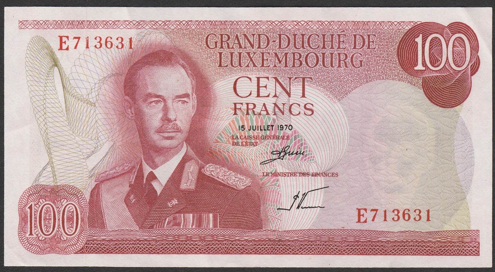 Luksemburg 100 franków 1970 - książę Jan - stan 2