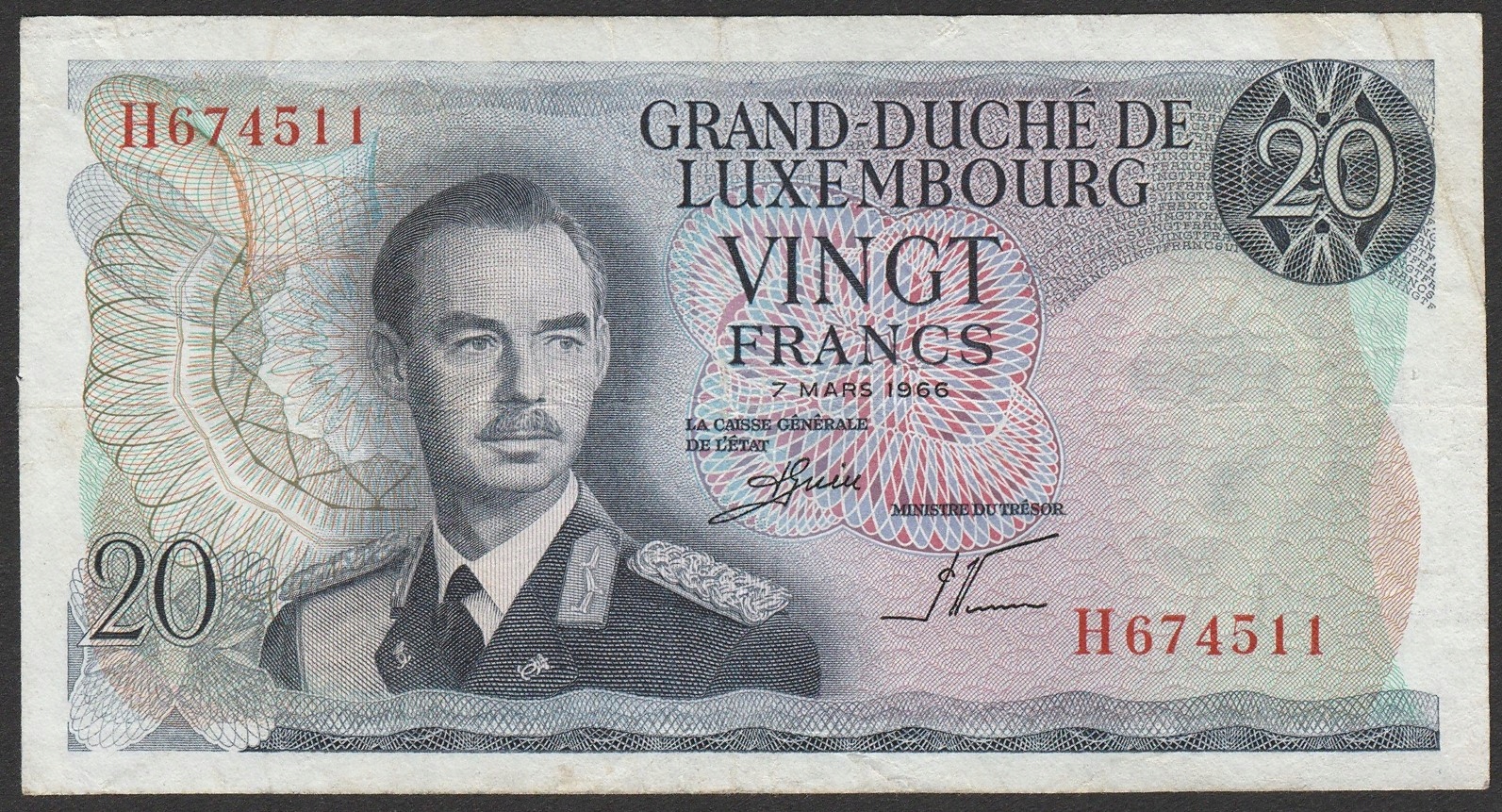 Luksemburg 20 franków 1966 - książę Jan - stan 2/3