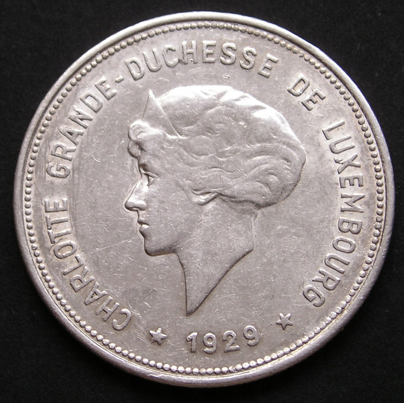 Luksemburg 5 franków 1929 - księżna Charlotte - srebro