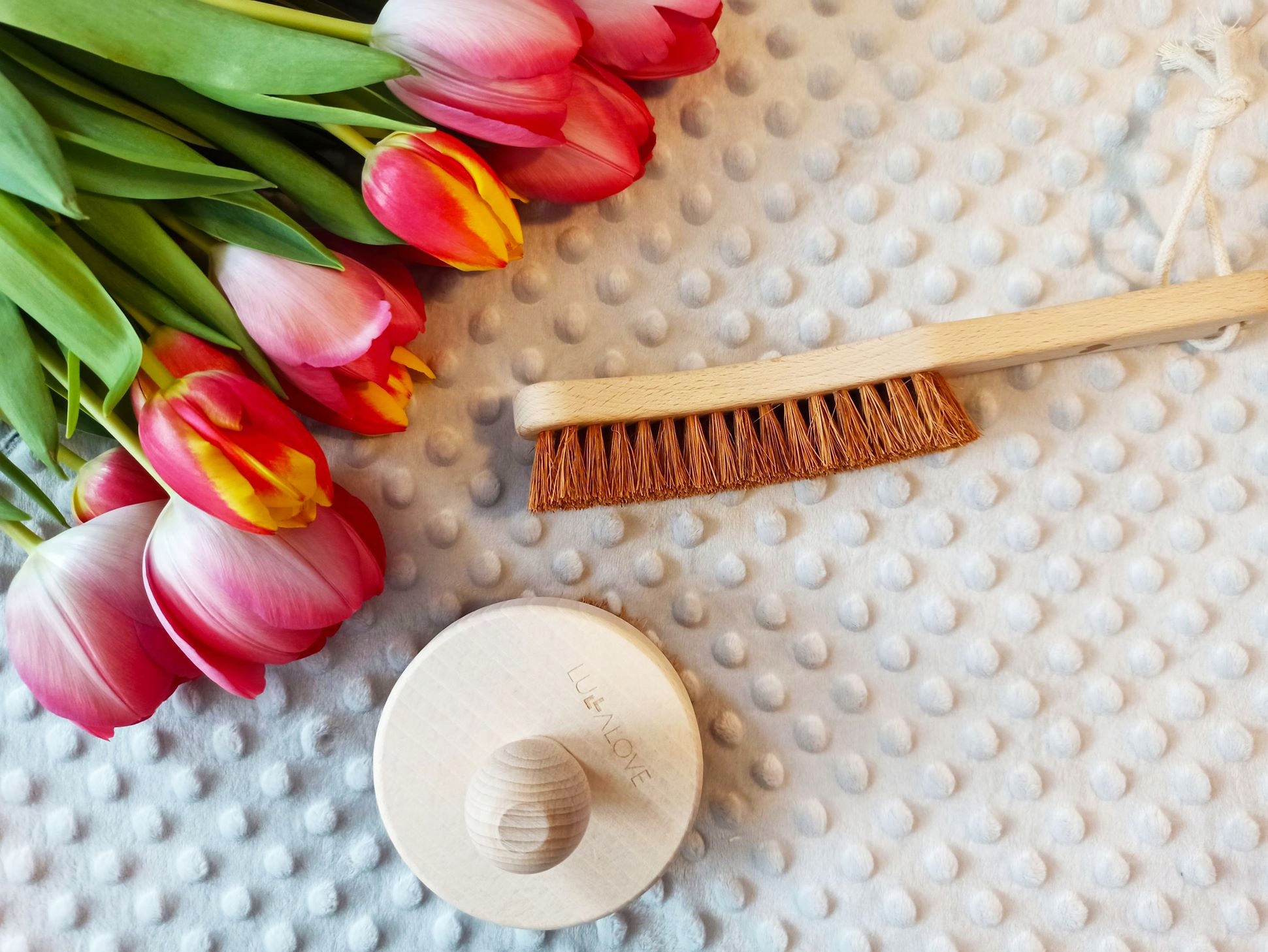 LULLALOVE ЩЕТКА ДЛЯ МАССАЖА ТЕЛА КОКОС НА РУЧКЕ
